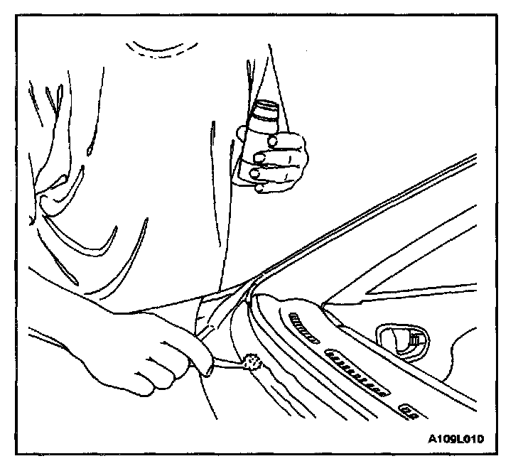 2. Apply tape to the new weatherstrip and the wind-shield to hold the weatherstrip in place.