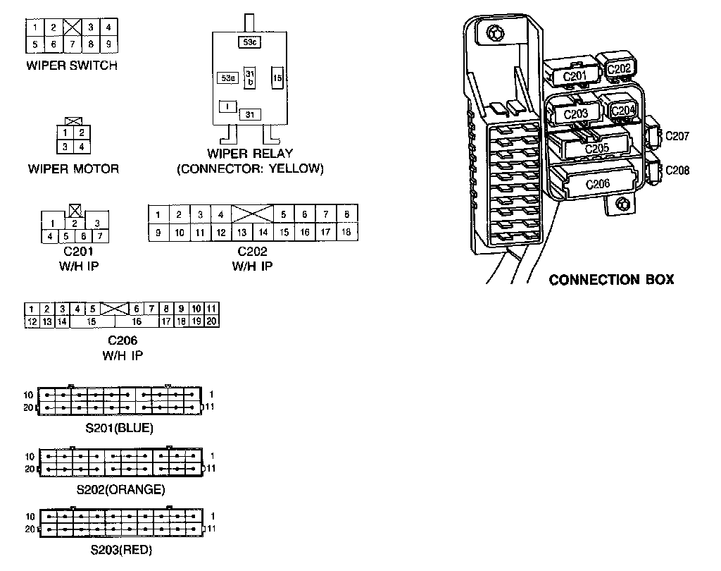 Connector Identification Symbol & Pin Number Position: