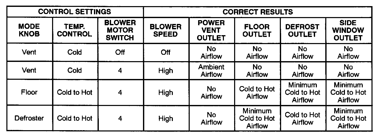 HEATING SYSTEMThis procedure provides a test of all functions of the heater/defroster unit.