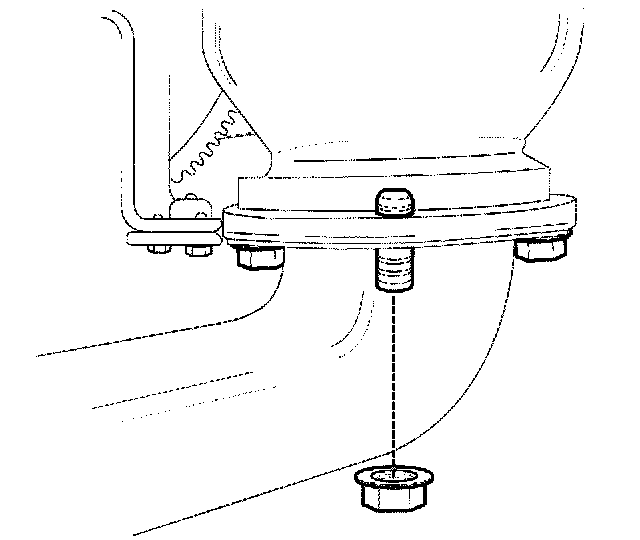 Important: Position the auxiliary catalytic converter onto the exhaust manifold flange with one upper flange nut and bolt.