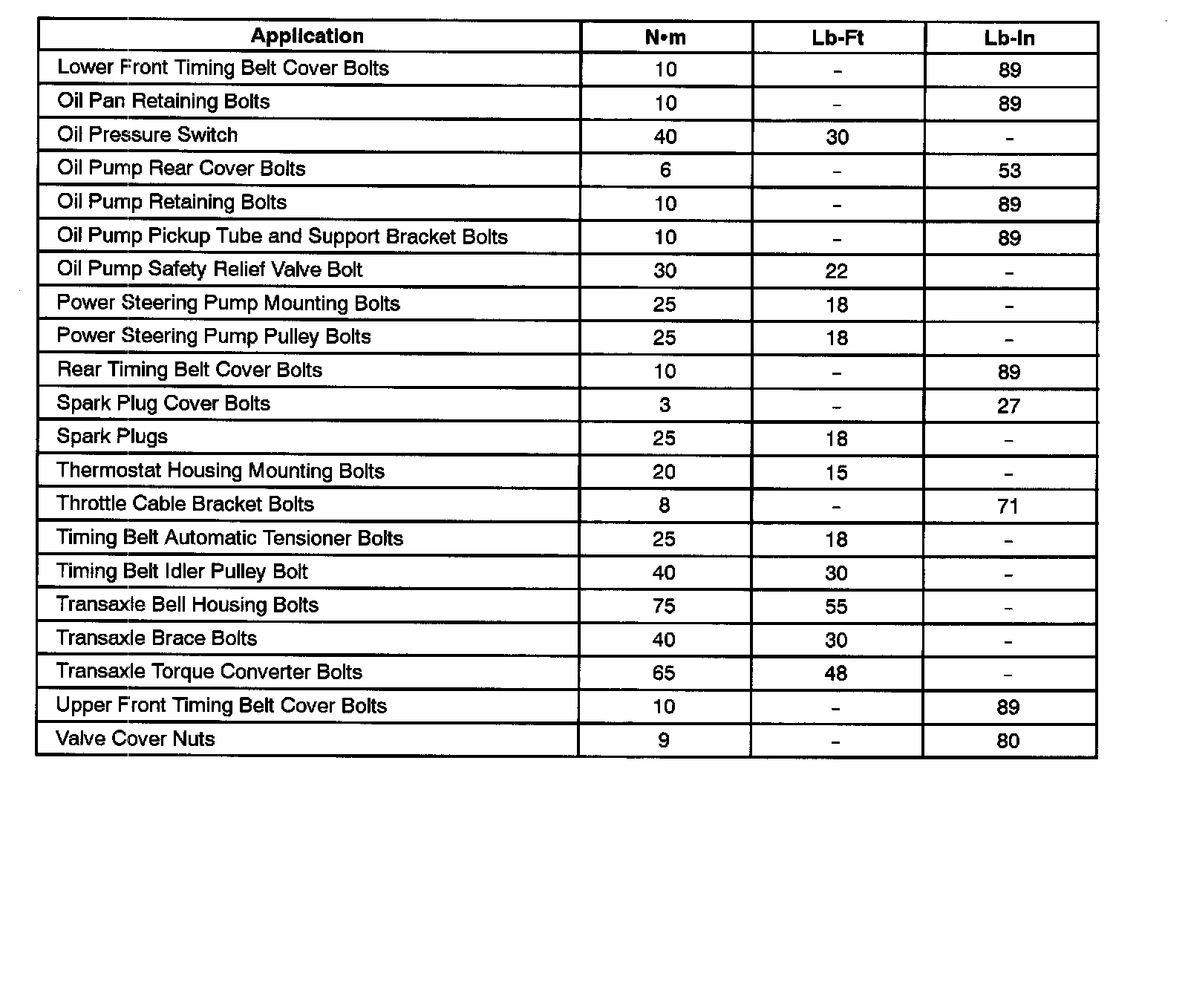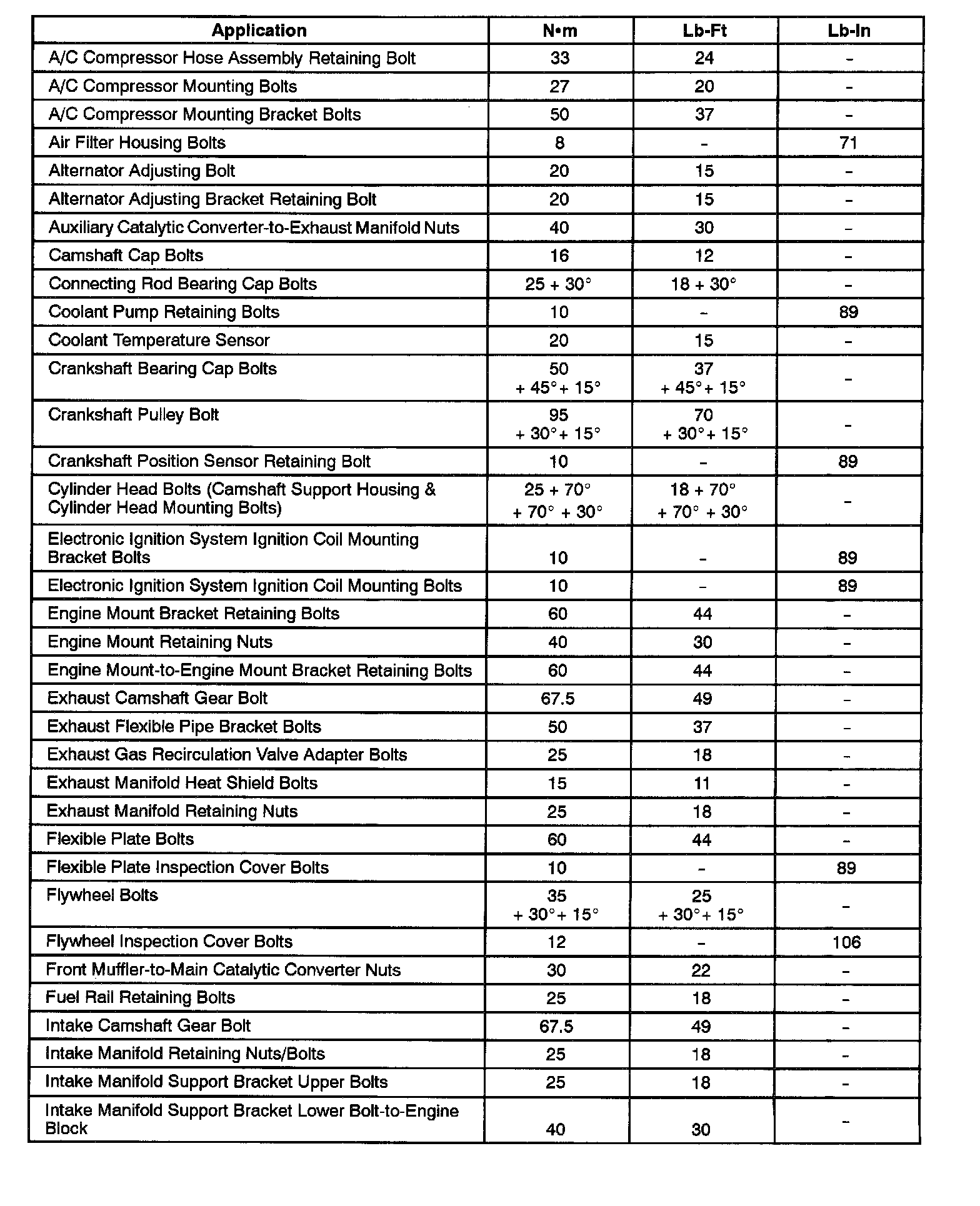 Fastener Tightening Specifications