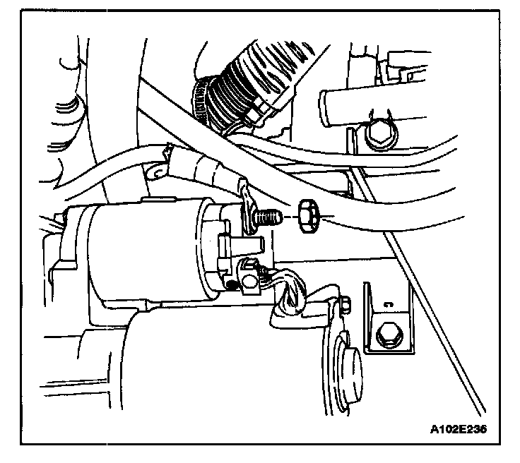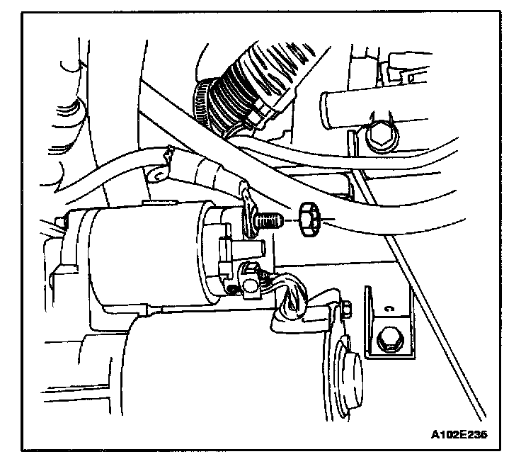 1. Remove the upper and the lower starter mounting bolts.