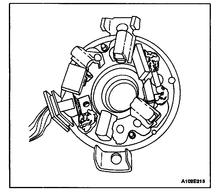 17. Position the commutator end frame/brush holder assembly, lining up the end frame holes with the through-bolt holes in the housing.