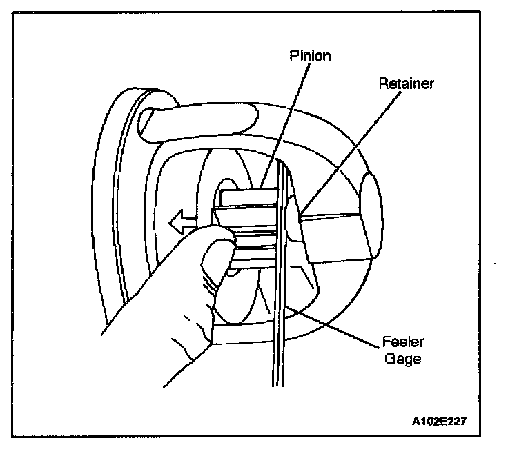 35. Push the pinion back as far as possible to take up any movement, and check the clearance with a feeler gauge. The clearance should be 0.25 to 3.56 mm (0.01 to 0.14 inch).