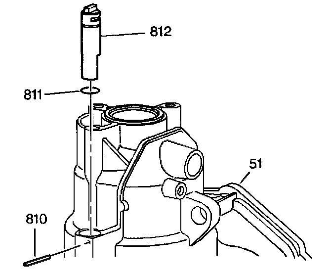 2. Remove the actuator guide (812) and O-ring seal (811) assembly from the case (51). For easiest removal, tap the actuator guide (812) into the case (51).