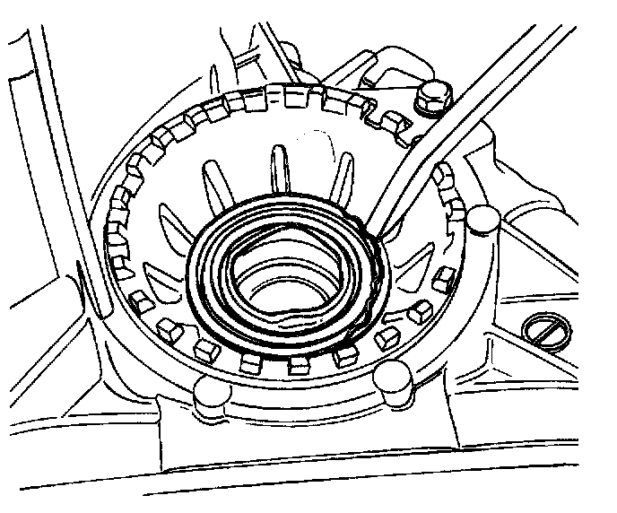 Notice: Do not damage the bearing adjusting ring with the pry bar.