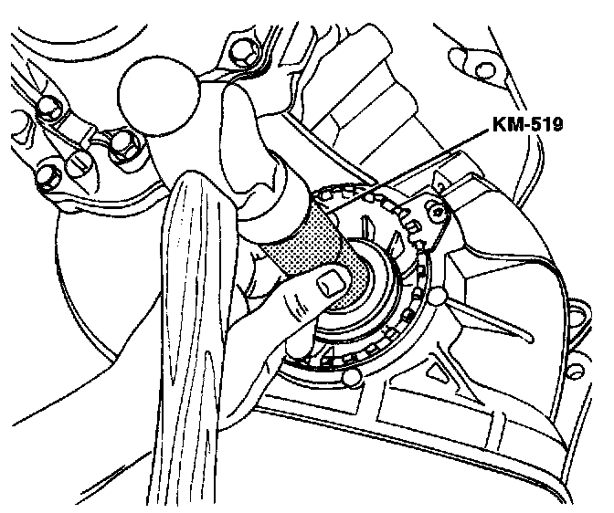 1. Install the new drive axle seal using the ring installer KM-519 and a hammer.