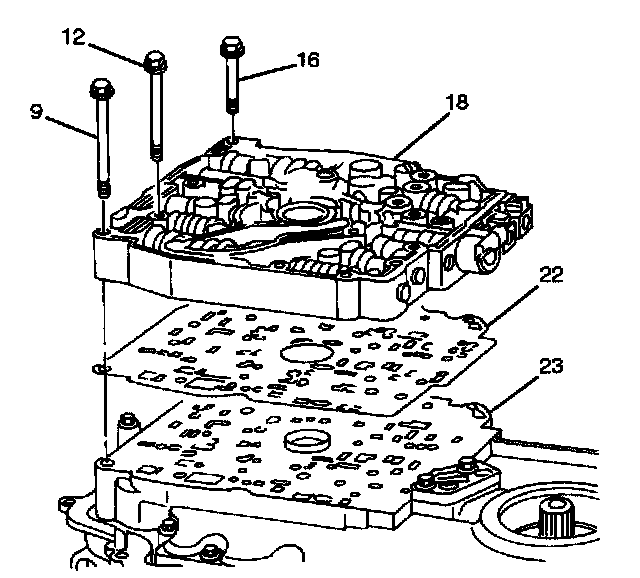 CONTROL VALVE ASSEMBLY AND TFP SWITCH INSTALL1. Install the control valve body assembly to spacer plate gasket (22) onto the spacer plate (23).