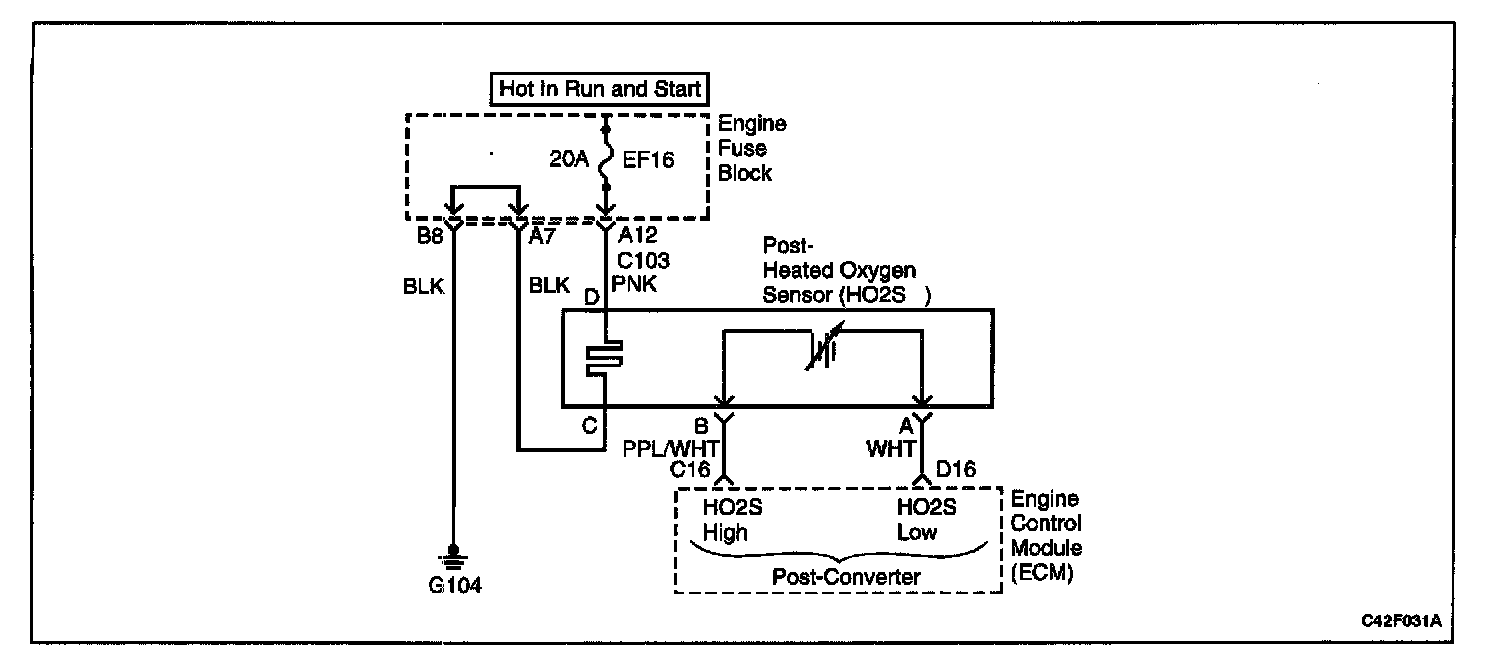 3. Probing terminal D of the HO2S connector verifies if voltage is available to the HO2S heater.