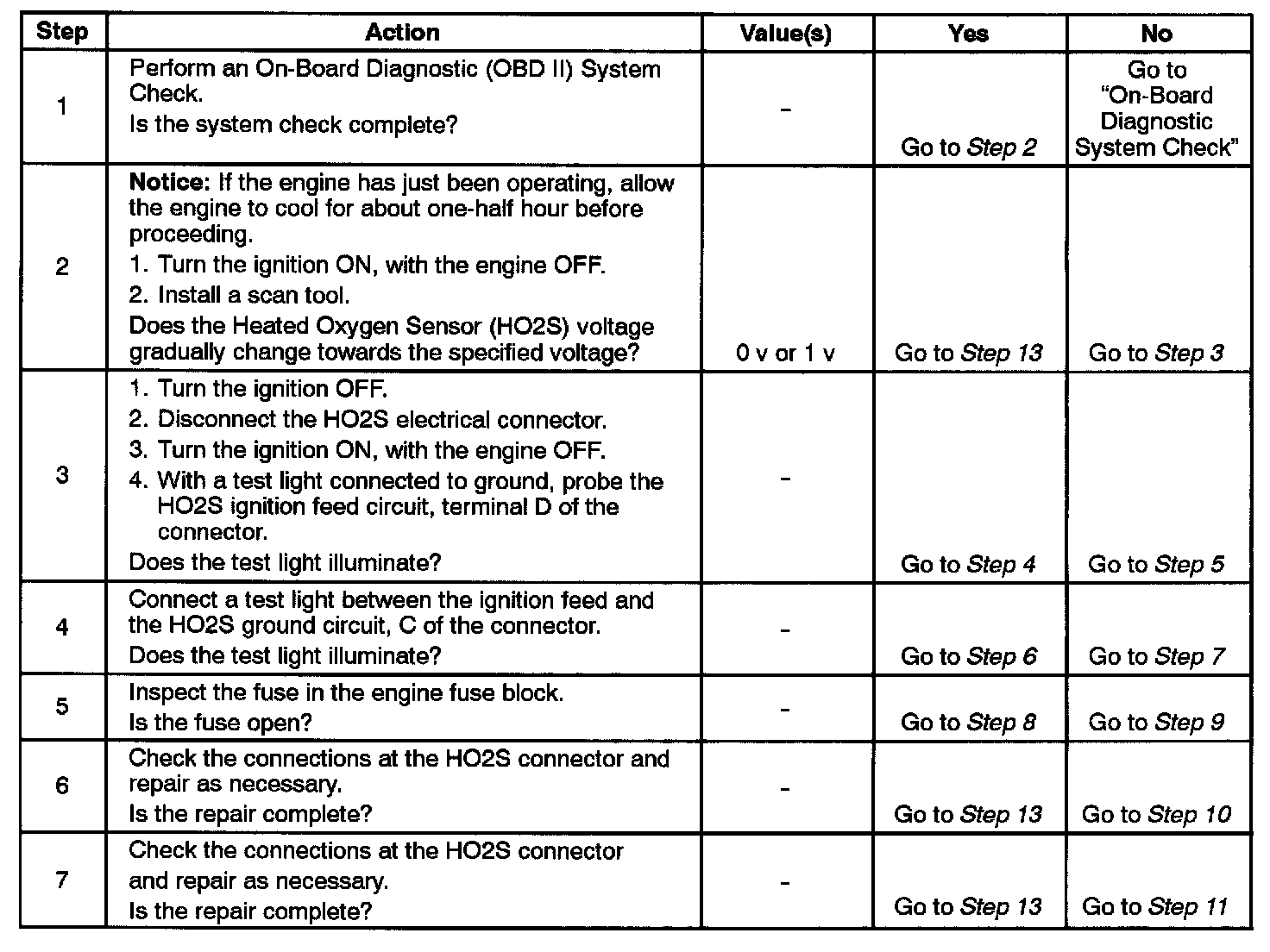 - HO2S voltage at key ON must be between 400 mV and 500 mV.