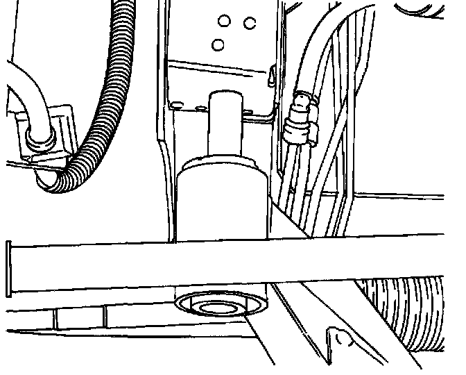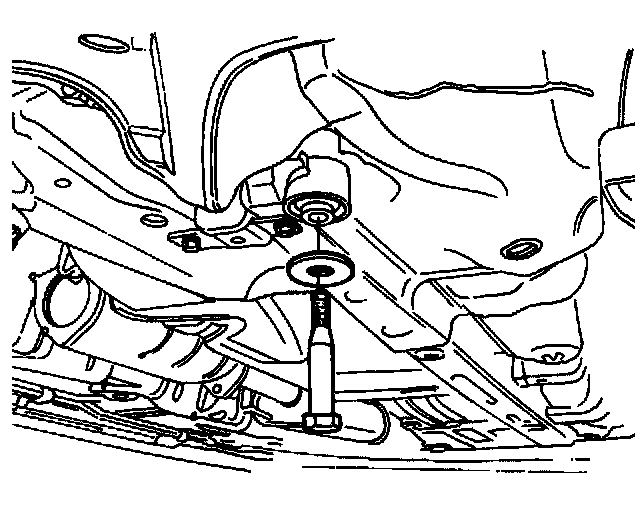 7. Remove the crossmember-to-body front nuts and the washers.
