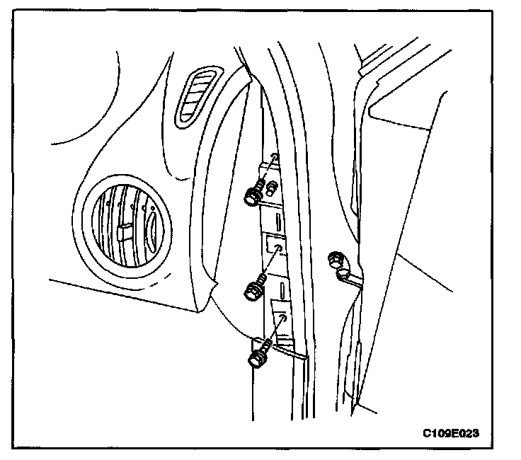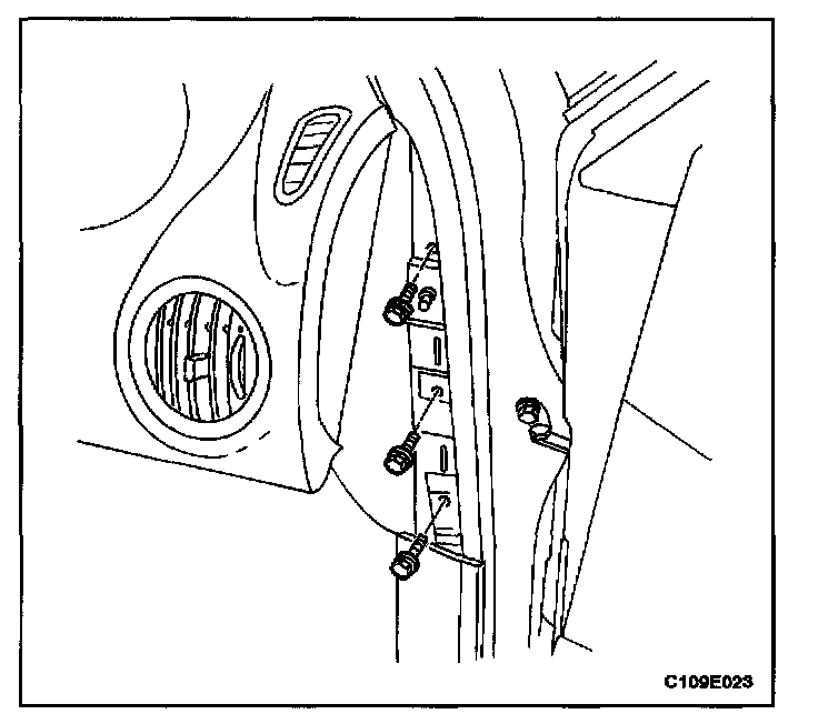 23. Remove the bolts securing the sides of the instrument panel to the body.