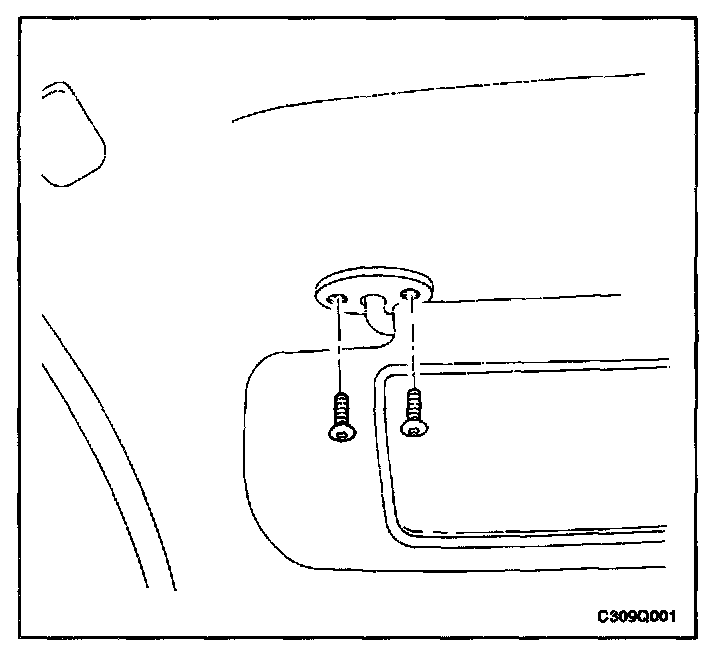 1. Remove the screws and the sun visor from the headliner.
