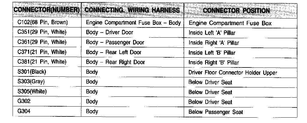 Connector Information Chart: