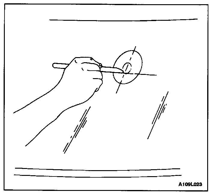 2. Mark this position on the outside of the glass with a wax pencil or crayon. Draw a large diameter circle around the mirror support location on the outside of the glass.