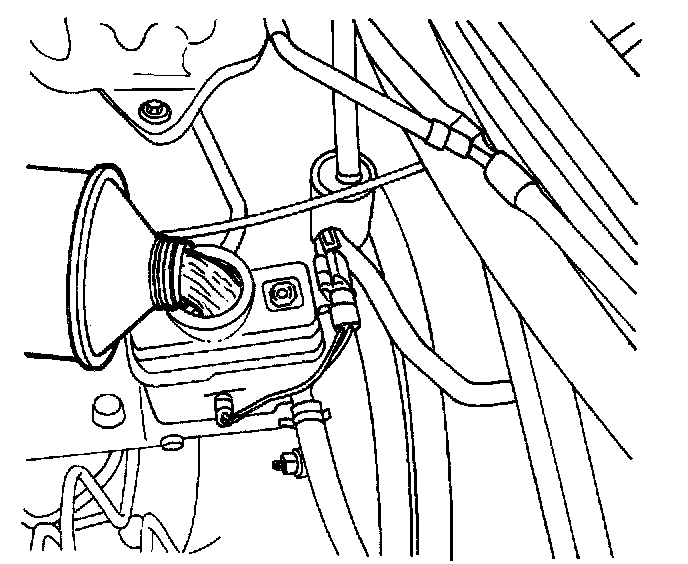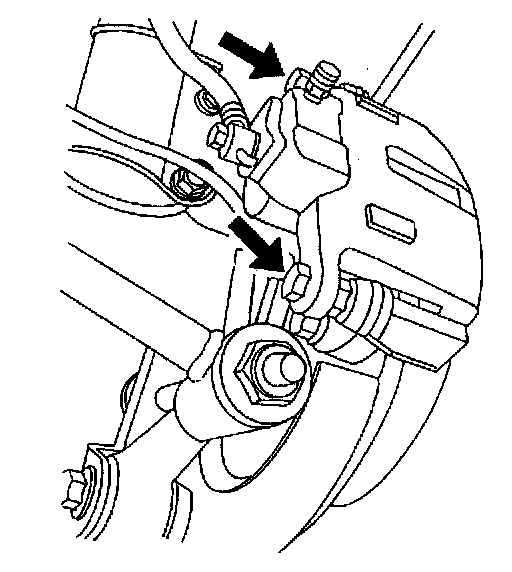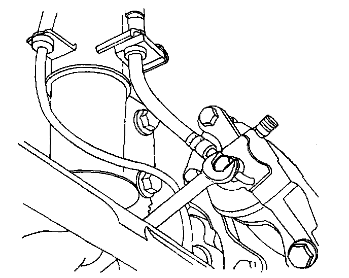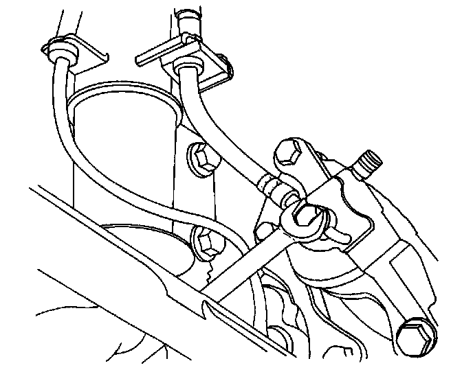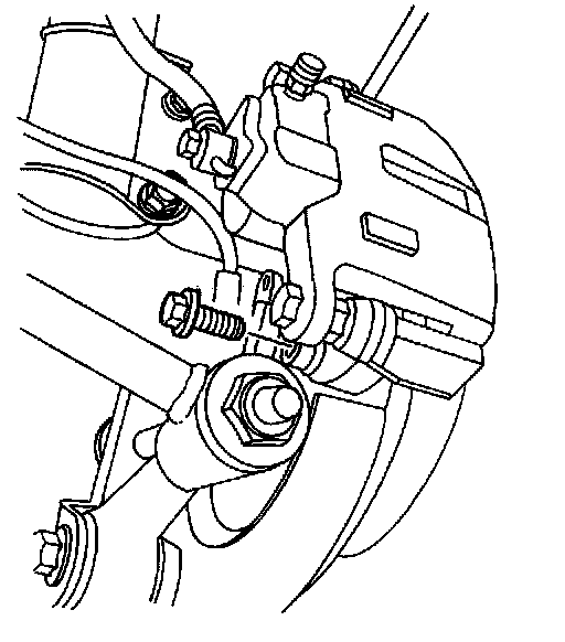 4. Disconnect the brake hose. Plug the openings in the caliper and the brake hose to prevent fluid loss or contamination.