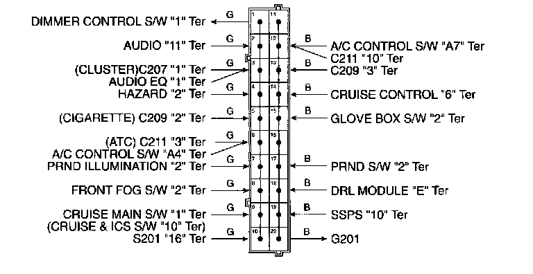 Connector Identification Symbol & Pin Number Position:
