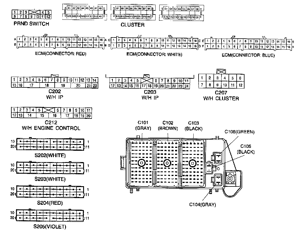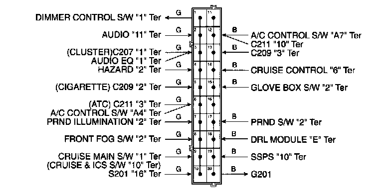 Connector Identification Symbol & PIN Number Position: