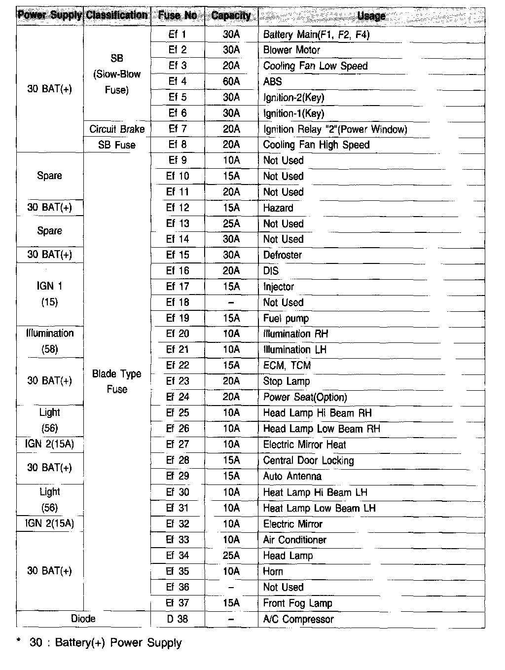 Engine Compartment Fuse Box - Fuse Application Chart: