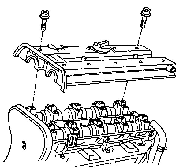 5. Apply a small amount of gasket sealant to the corners of the front camshaft caps and to the top of the rear valve cover-to-cylinder head seal.