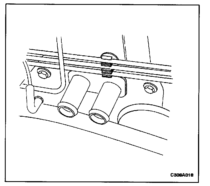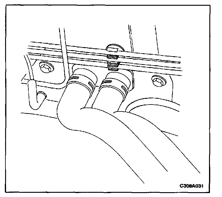 3. Compress and slide rearward the two heater hose spring clamps at the bulkhead.