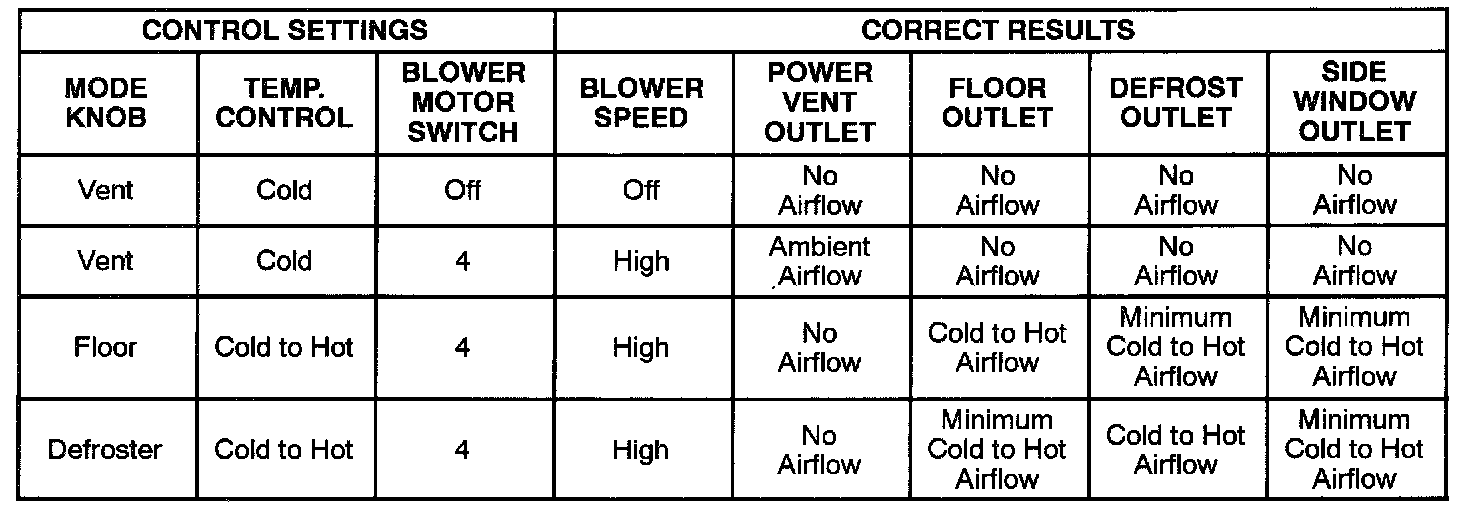This procedure provides a test of all functions of the heater/defroster unit.