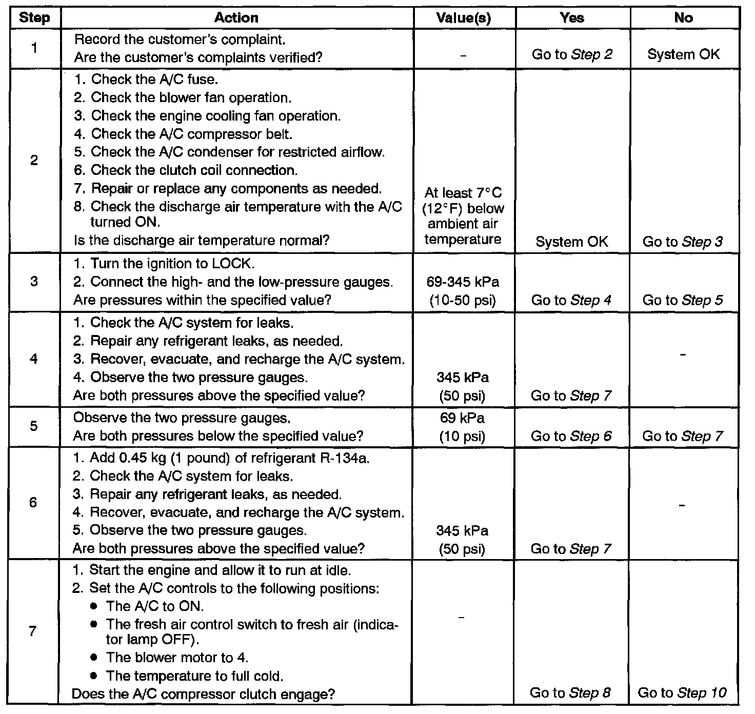IMPORTANT: Perform this test under garage conditions with the air temperature at 21 - 32 °C (70 - 90 °F), and no sun load. Follow this test carefully for accurate results.