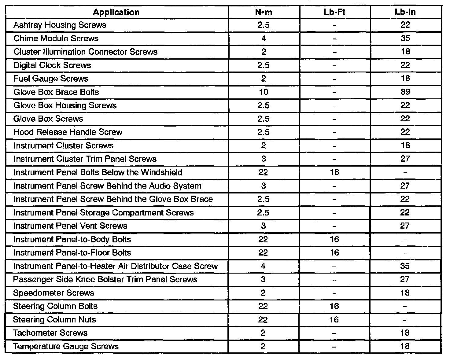 Fastener Tightening Specifications: