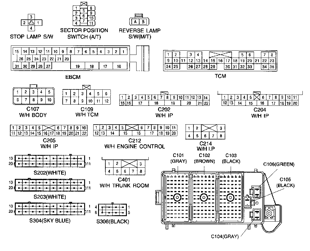 Connector Identification Symbol & Pin Number Position: