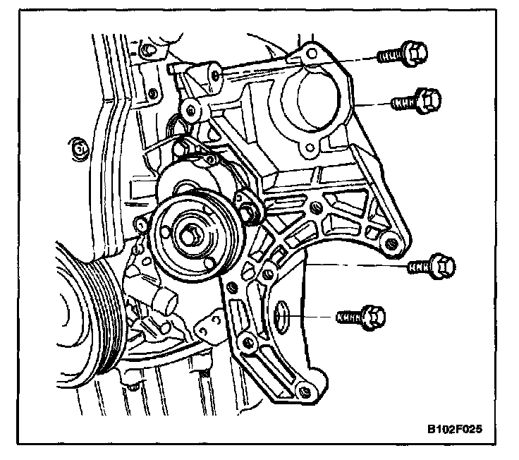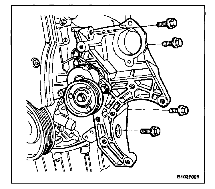 2. Remove the power steering pump, if equipped. Refer to Power Steering Pump.