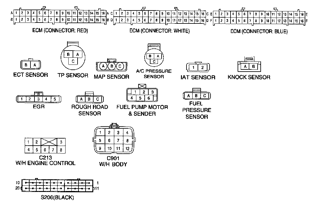MAP, A/C Pres,IAT,EGR,TP,ECT,Fuel Pres Sensors&Fuel Gauge Circ