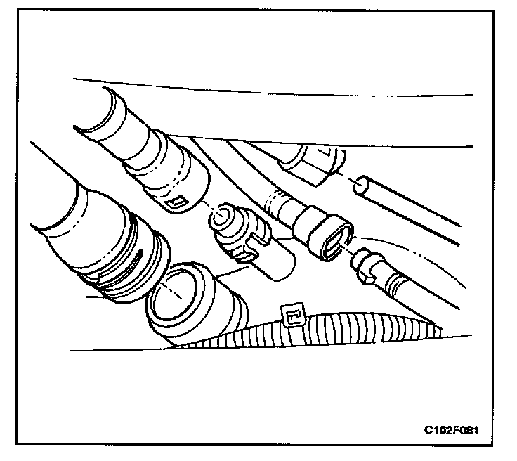 REMOVAL PROCEDURECAUTION: The fuel system is under pressure. To avoid fuel spillage and the risk of personal injury or fire, it is necessary to relieve the fuel system pressure before disconnecting the fuel lines.
