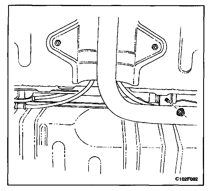 10. Disconnect the fuel inlet line and the fuel return line near the right front of the fuel tank.
