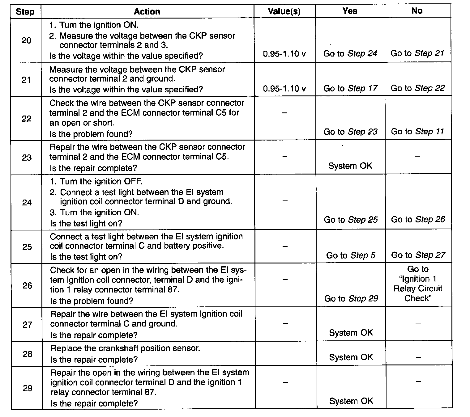 24. This step, along with step 25, checks for battery voltage and a ground to the EI system ignition coil.