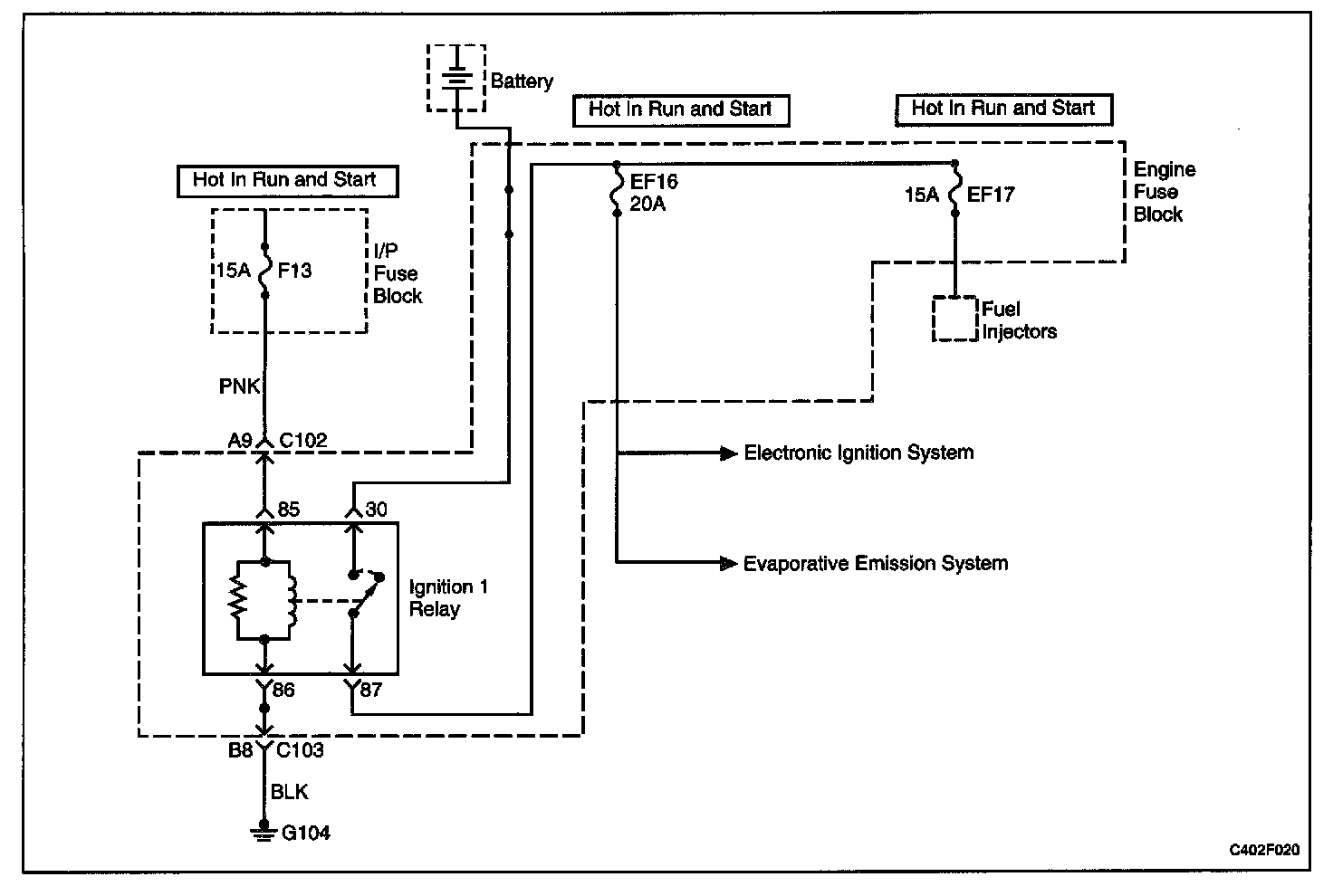 - A faulty ignition 1 relay will cause a no start condition. There will be no voltage supplied to the El system ignition coil, or the fuel injectors. Without voltage supplied to these components, they will not operate.