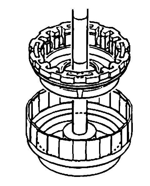 7. Install the clutch piston return spring. Position spring compressor KM-698 on the clutch piston return spring. Using a press, compress the spring, then install the snap ring into the groove.