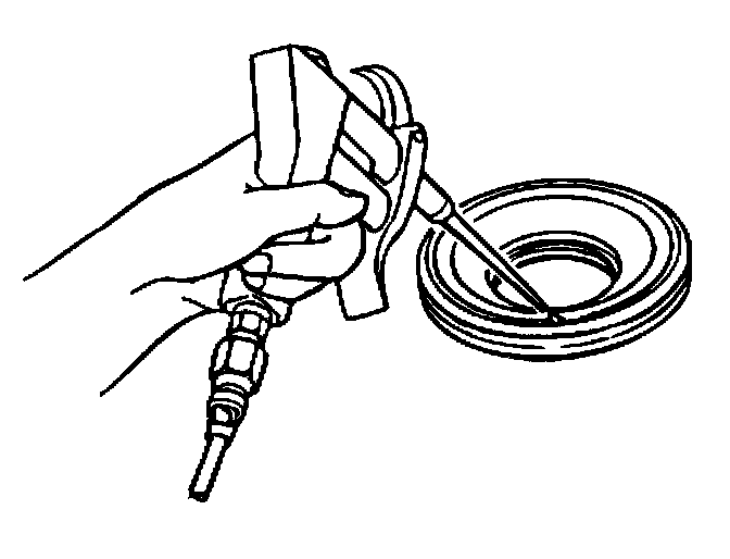 7. Apply 57 psi (396 kPa) of compressed air into the oil passage to remove the underdrive clutch piston.