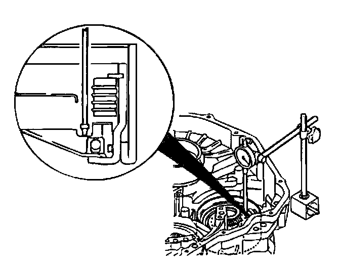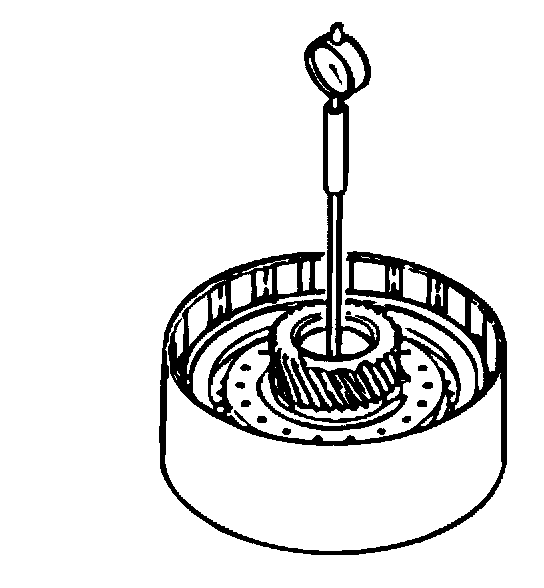 - Using a dial indicator, measure the inner diameter of the underdrive drum bushing. Measure the bushing at three different places and calculate the average. If it is greater than the maximum, replace the underdrive drum.