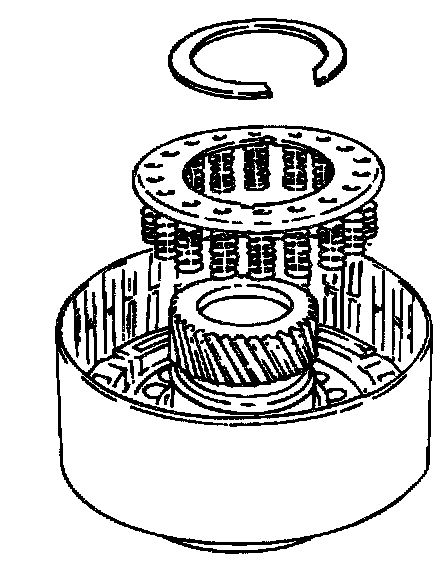 6. Install the underdrive clutch pack and the clutch pressure plate.