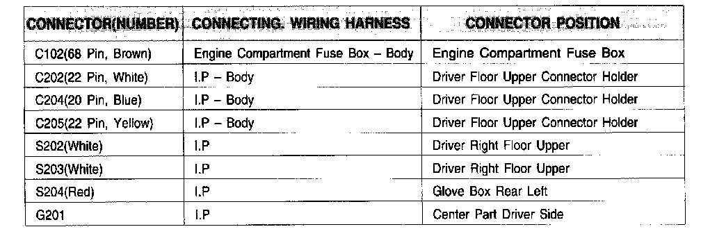 Connector Information Chart: