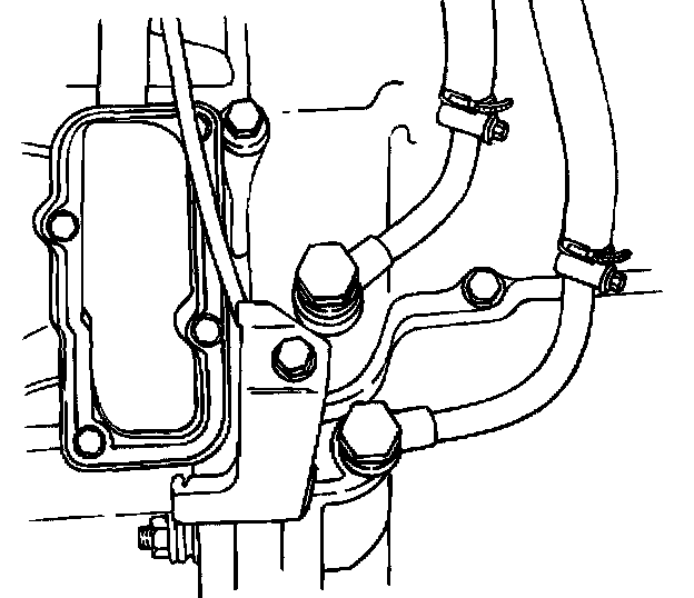 - Tighten the fluid cooler pipe bolts to 35 Nm (26 ft. lbs.).