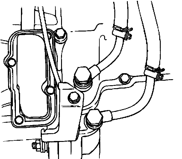 - Tighten the fluid cooler pipe bolts to 35 Nm (26 ft. lbs.).