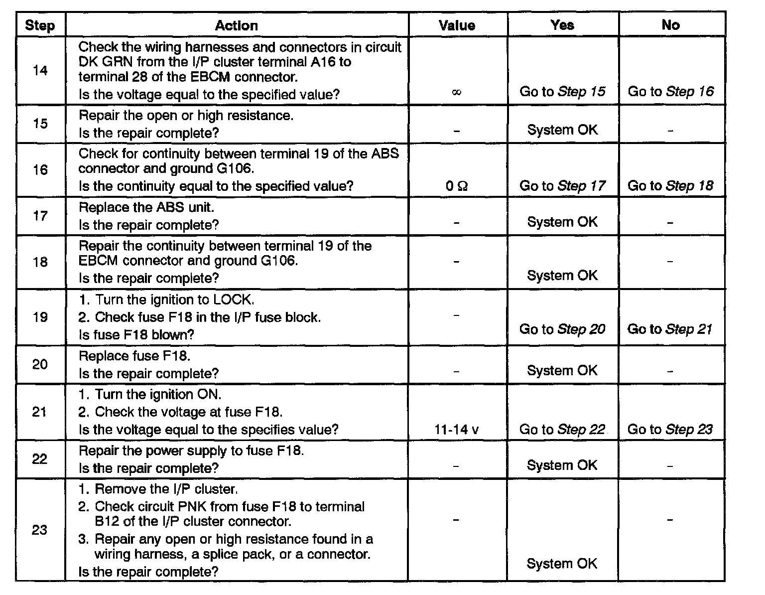 4. This begins a series of tests of the circuit from the indicator lamp to the EBCM and ground.