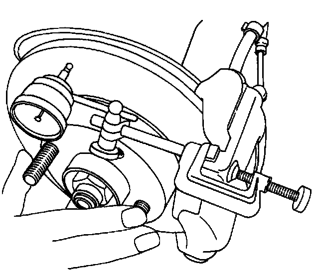 7. If necessary, refinish the rotor with precision equipment. Measure the runout again after refinishing. If the runout exceeds 0.10 mm (0.004 inch) after refinishing, the rotor should be replaced.
