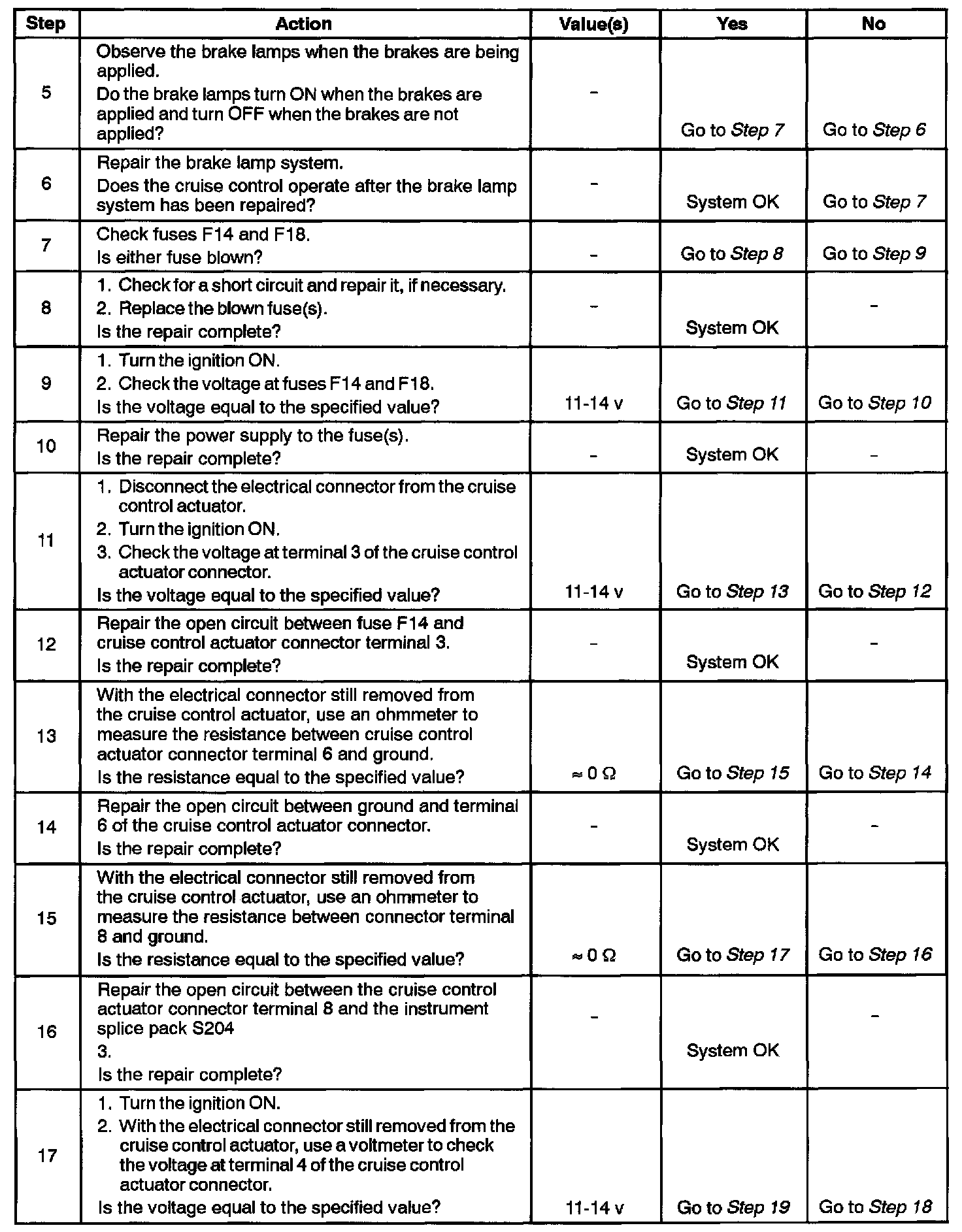 Cruise Control Does Not Operate Step 5 - 17:
