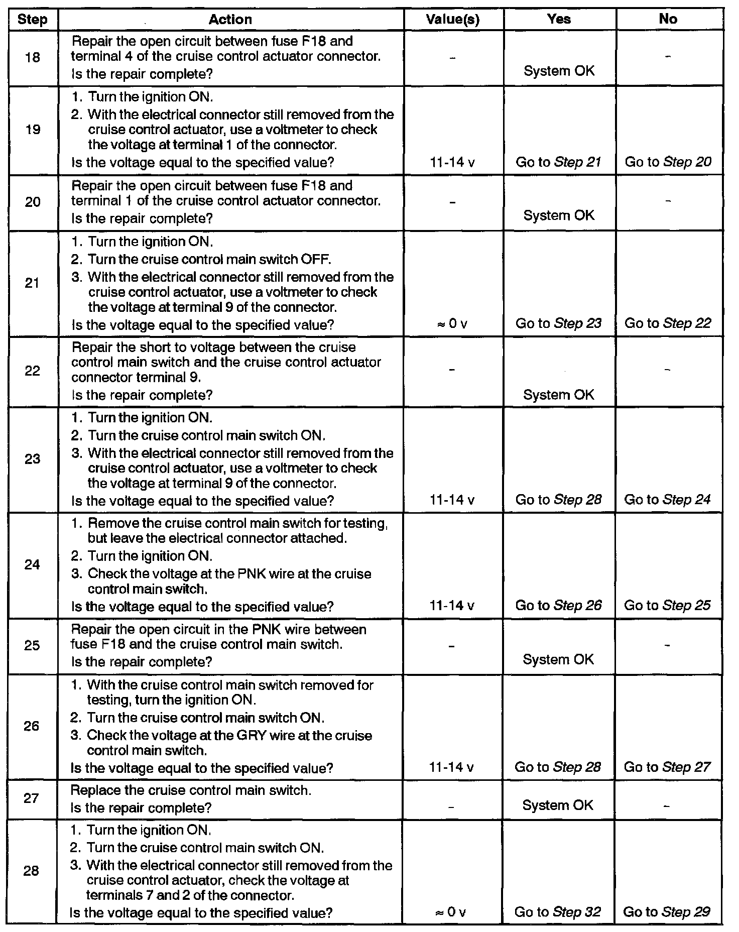 Cruise Control Does Not Operate Step 18 - 28:
