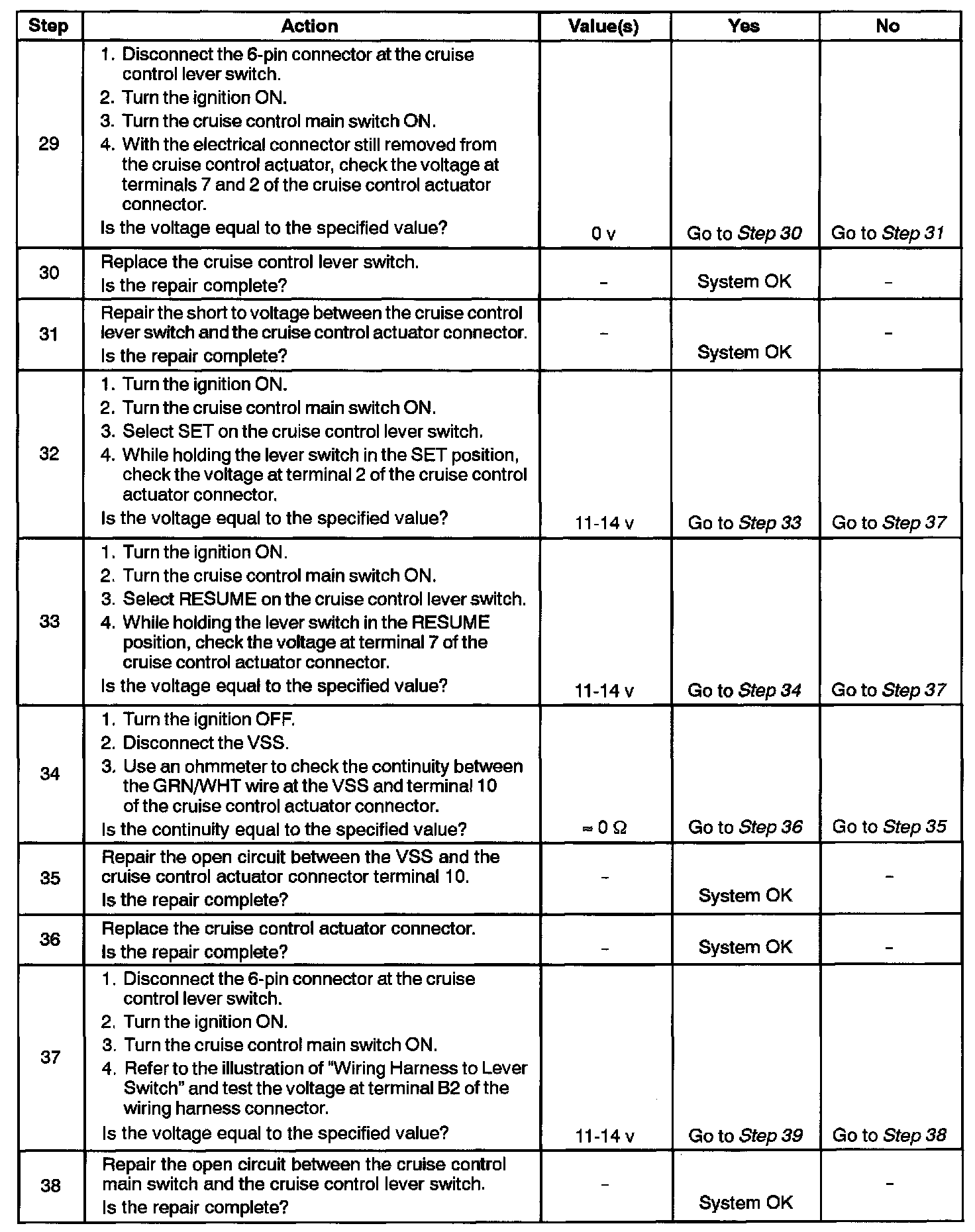 Cruise Control Does Not Operate Step 29 - 38: