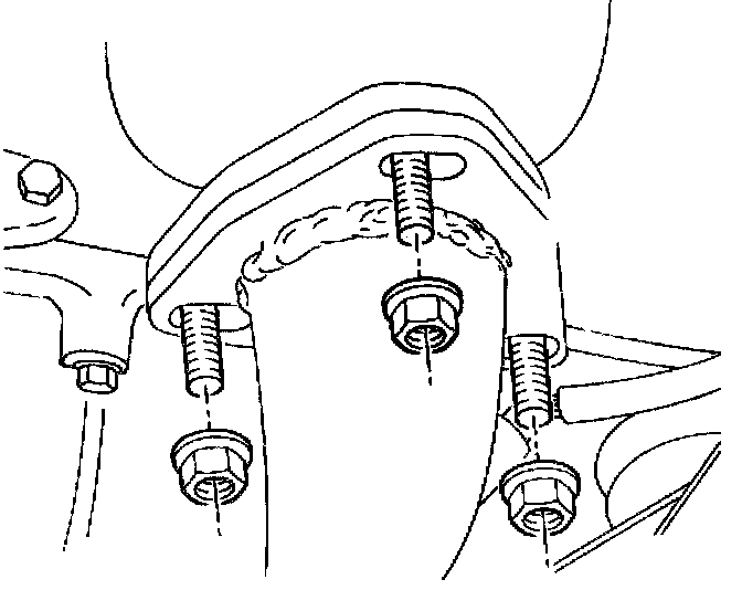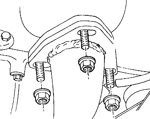 6. Install the right engine mount bracket retaining bolts and the nuts.