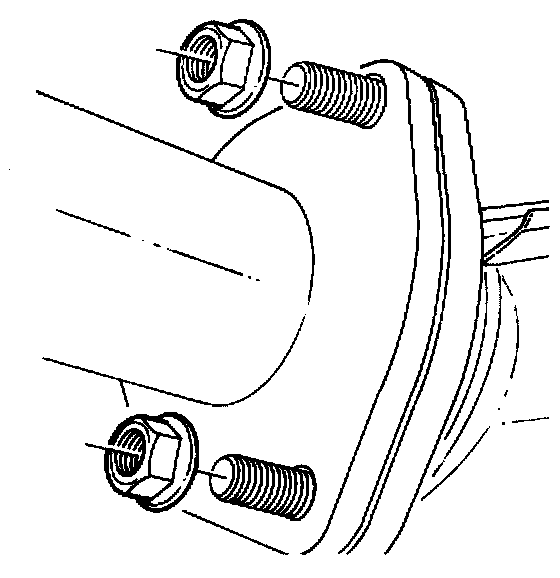 18. Insert the main catalytic converter bolts into the front muffler flange.