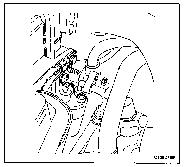 Tighten the high-pressure pipe-to receiver-dryer connecting block nut to 10 N.m (89 lb-in).